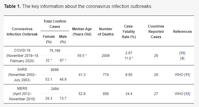 논문에 있는 아래 표를 보면 기존 SARS와 MERS와 얼마나 차이가 있는지 알 수 있습니다.