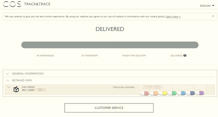 독일 COS 쉬핑 메일 없이 트래킹 넘버 확인하는 방법(배송 조회 방법)